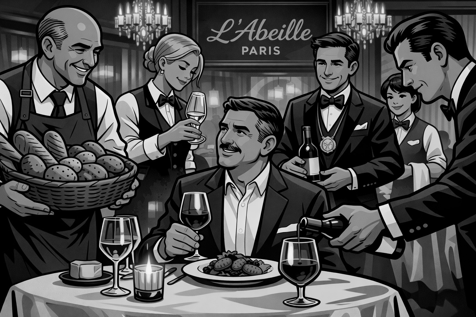 There's a concept economists talk about quietly — the premium of the human touch. Note that the more expensive the restaurant, the less likely it is to have automation via tablets or QR codes. At fine dining restaurants, the number of people serving you can rise along with the added work they do. The human touch is a specific and valued characteristic of the service. One of my own standout dining experiences at L’Abeille in Paris featured a bread sommelier, a water sommelier, a sommelier sommelier, and a number of waiters.